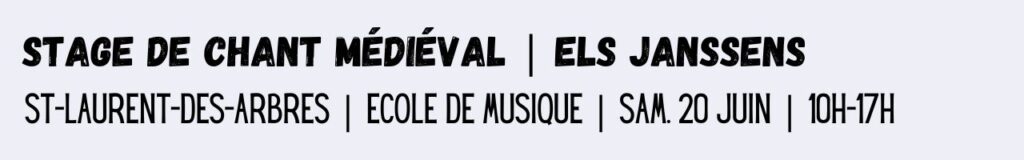 Au cours de ce stage de 4 jours, Caroline Marçot et Els Janssens proposent une pédagogie singulière, proche de la tradition médiévale : une transmission orale et une considération du corps comme instrument de la vocalité et de la mémorisation.